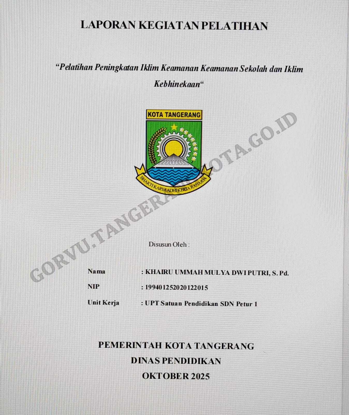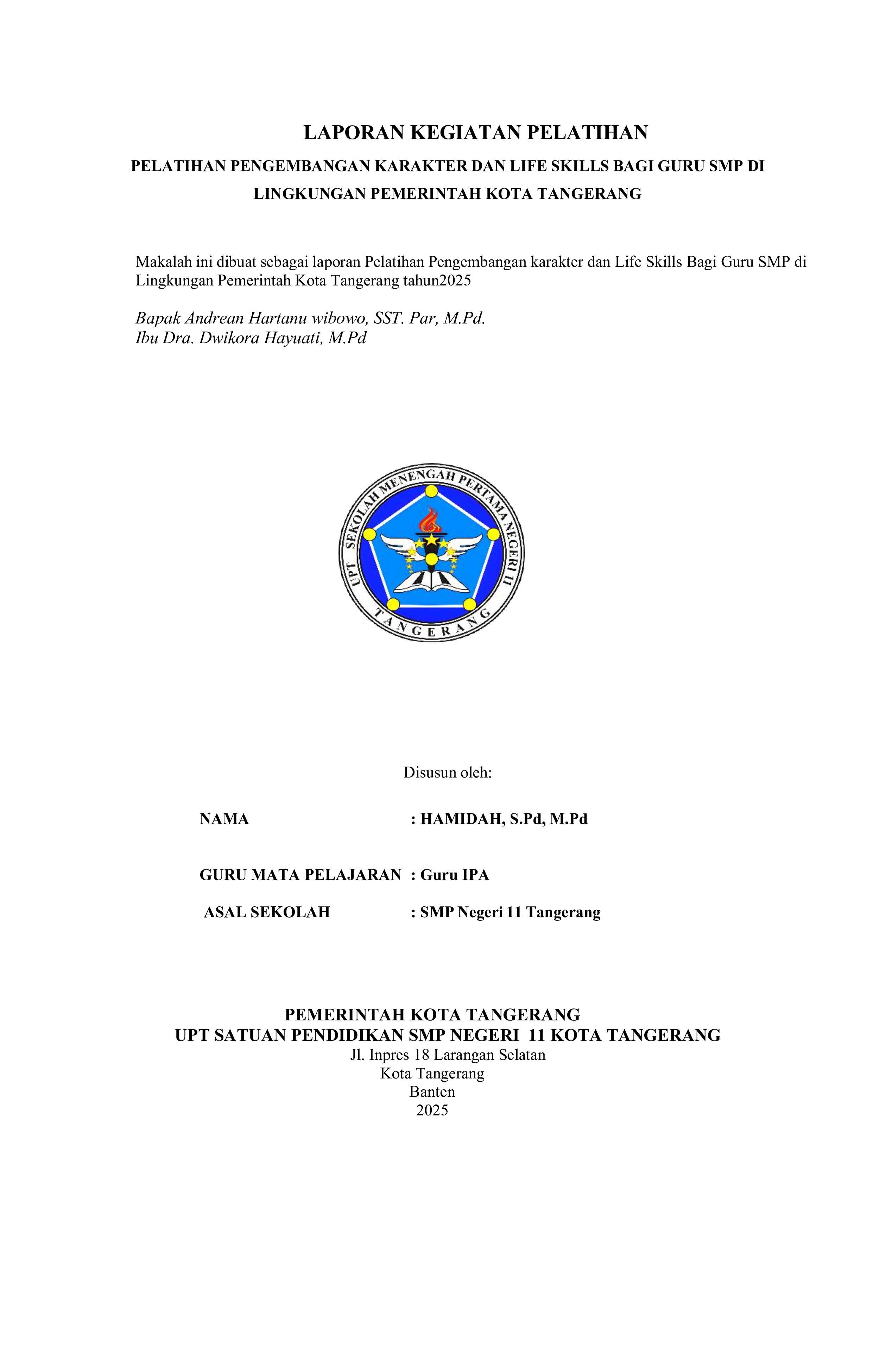 Laporan Kegiatan Pelatihan Pengembangan Karakter dan Life Skills bagi Guru SMP di Lingkungan Pemerintah Kota Tangerang Tahun 2025