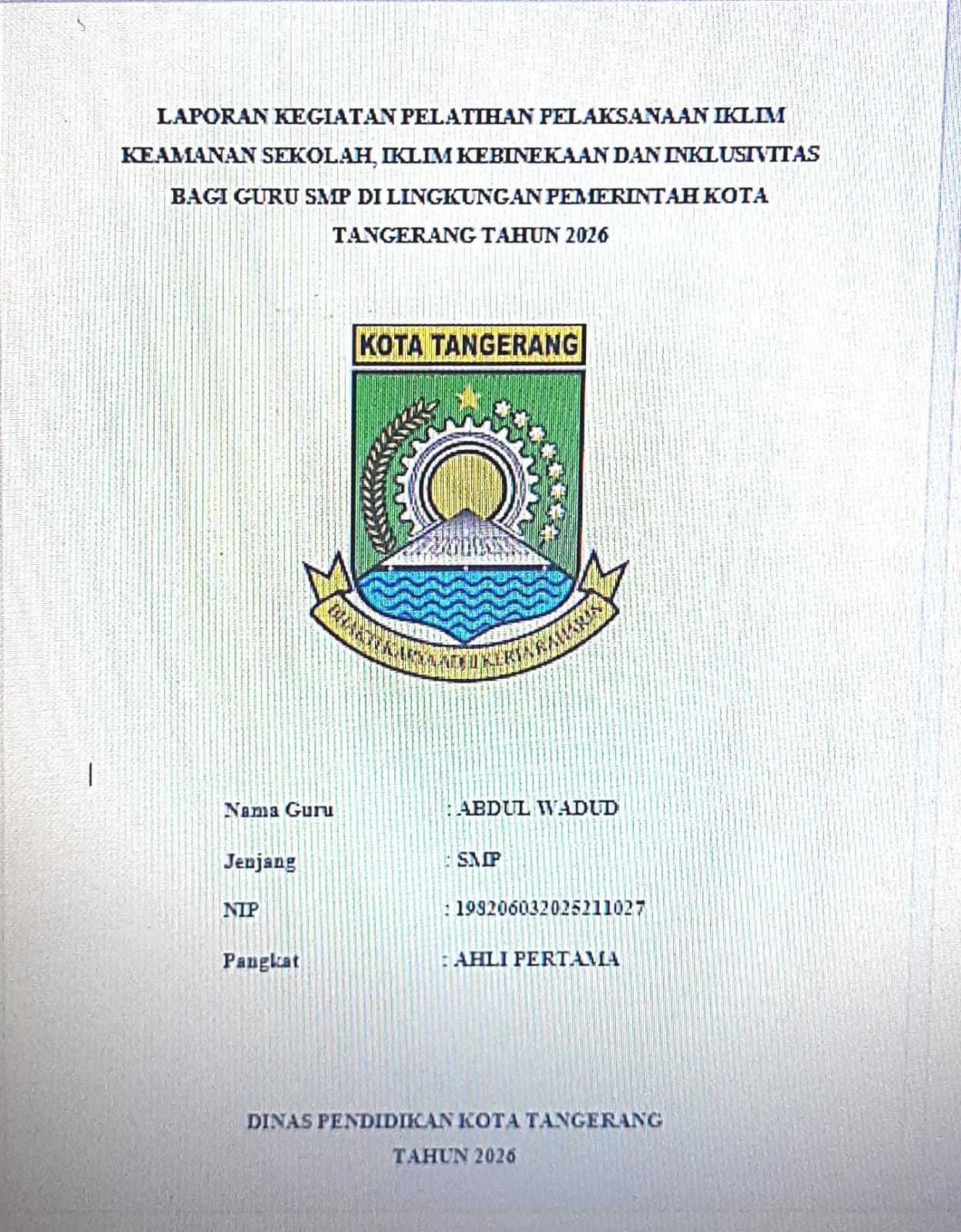 Laporan ini disusun sebagai bentuk dokumentasi dan pertanggungjawaban pelaksanaan kegiatan Pelatihan Peningkatan Kompetensi Asesmen Membaca Bagi Guru Sekolah Dasar di Lingkungan Pemerintah Kota Tangerang Tahun 2026. Laporan ini memuat gambaran…