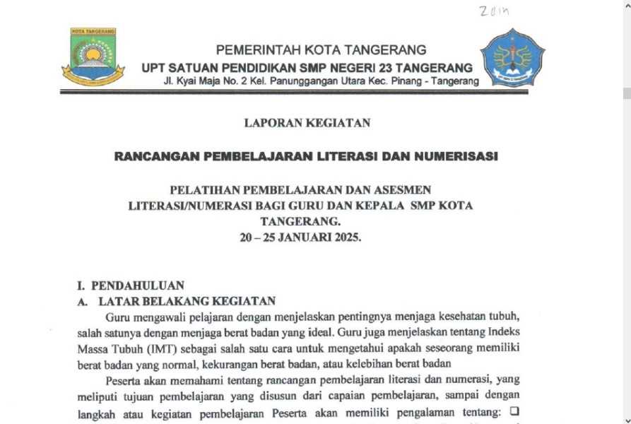 Dokumen ini merupakan laporan dari hasil pelatihan yang telah dilakukan selama 5 hari disertai dengan pengimbasan yang telah dilakukan di sekolah.