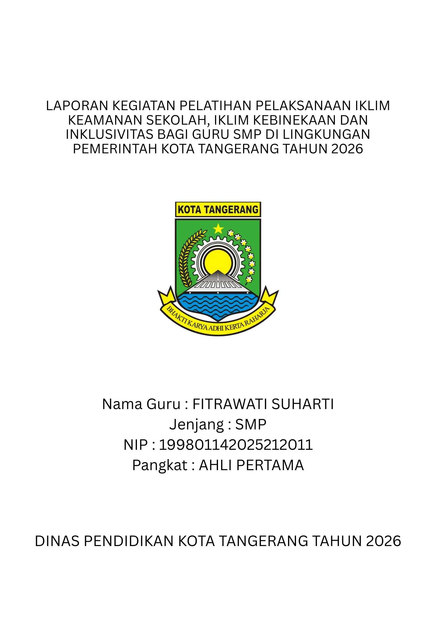 Laporan Kegiatan Pelatihan Pelaksanaan iklim Keamanan Sekolah, Kebhinekaan dan Inklusivitas Bagi Guru Sekolah Menengah Pertama Tahun 2026 berisi tentang hasil kegiatan pengalaman bermakna dan pembelajaran mendalam di kegiatan ini, terdapat…