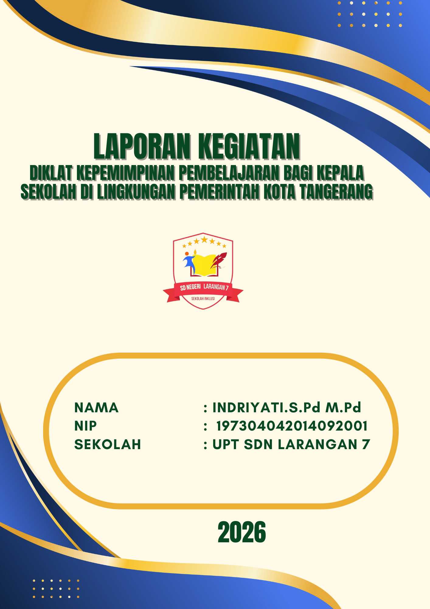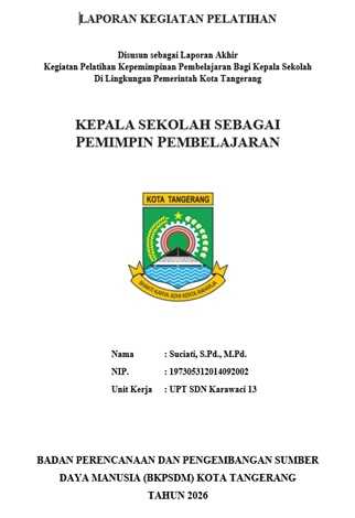 LAPORAN KEGIATAN PENDIDIKAN DAN PELATIHAN PEMIMPIN PEMBELAJARAN BAGI KEPALA SEKOLAH DI LINGKUNGAN PEMERINTAHAN KOTA TANGERANG