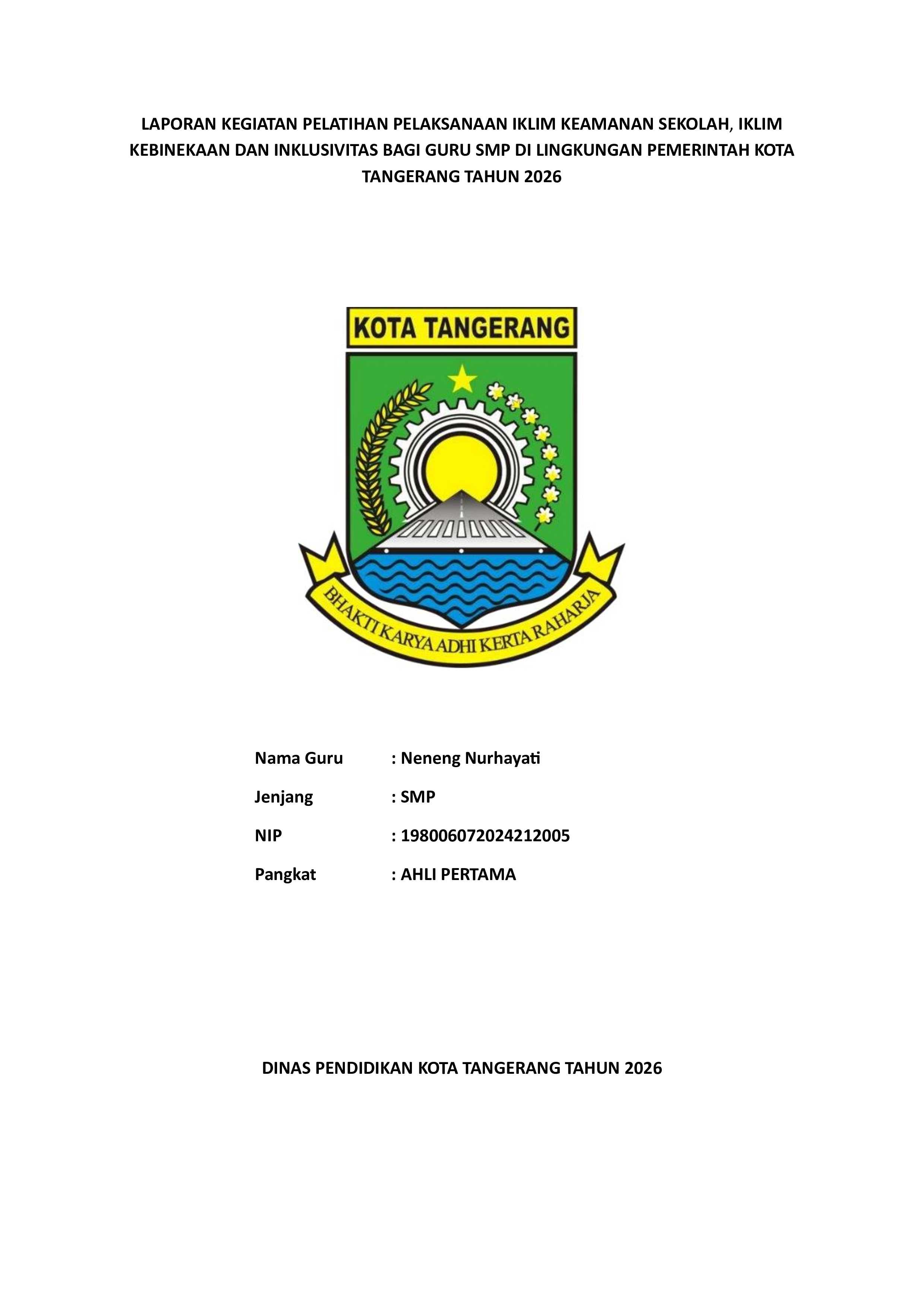 Kegiatan Pelatihan Pelaksanaan Iklim Keamanan Sekolah, Iklim Kebhinekaan dan Inklusivitas bagi guru SMP di Lingkungan Pemerintah Kota Tangerang 2026