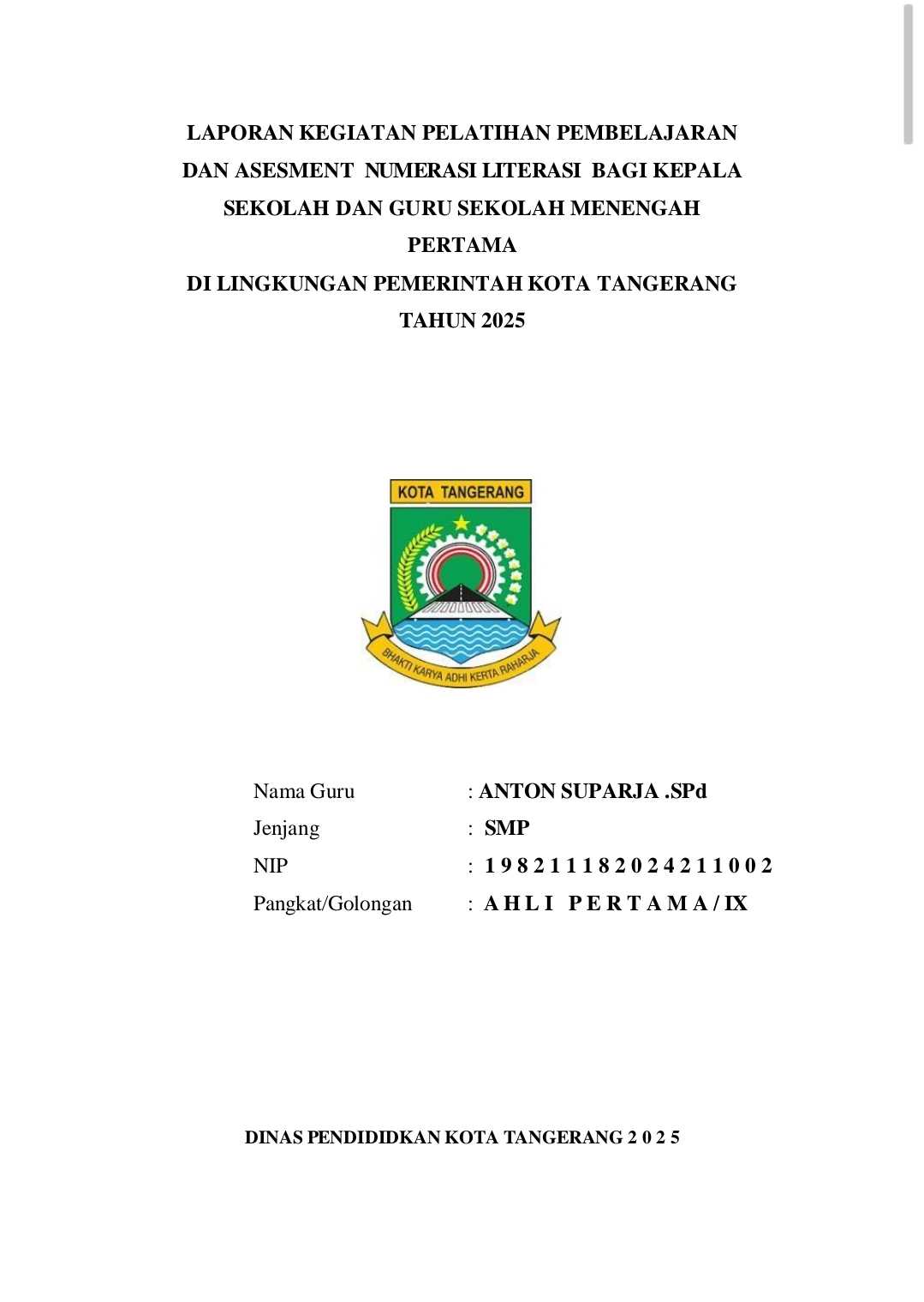 Laporan kegiatan Numerasi literasi tahun 2025