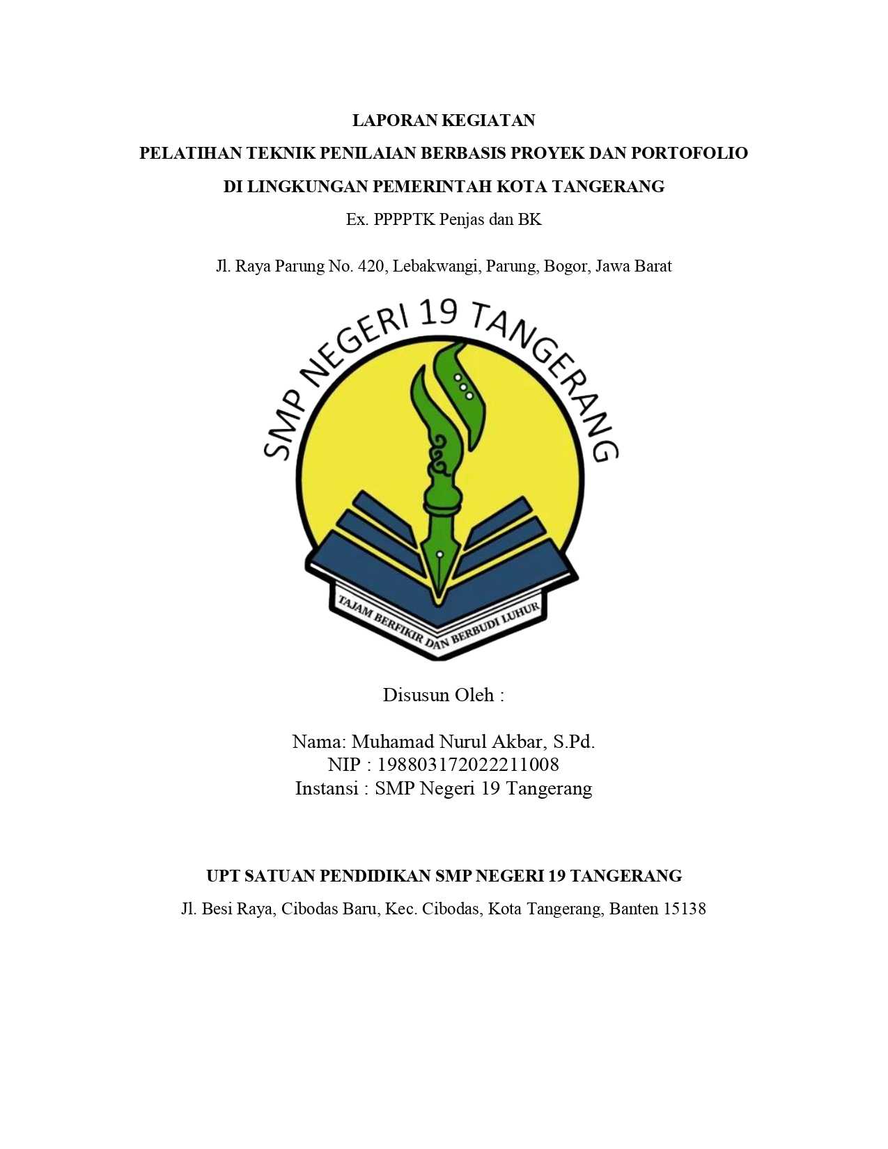 Laporan ini dibuat untuk tugas PELATIHAN TEKNIK PENILAIAN BERBASIS PROYEK DAN PORTOFOLIO DI LINGKUNGAN PEMERINTAH KOTA TANGERANG