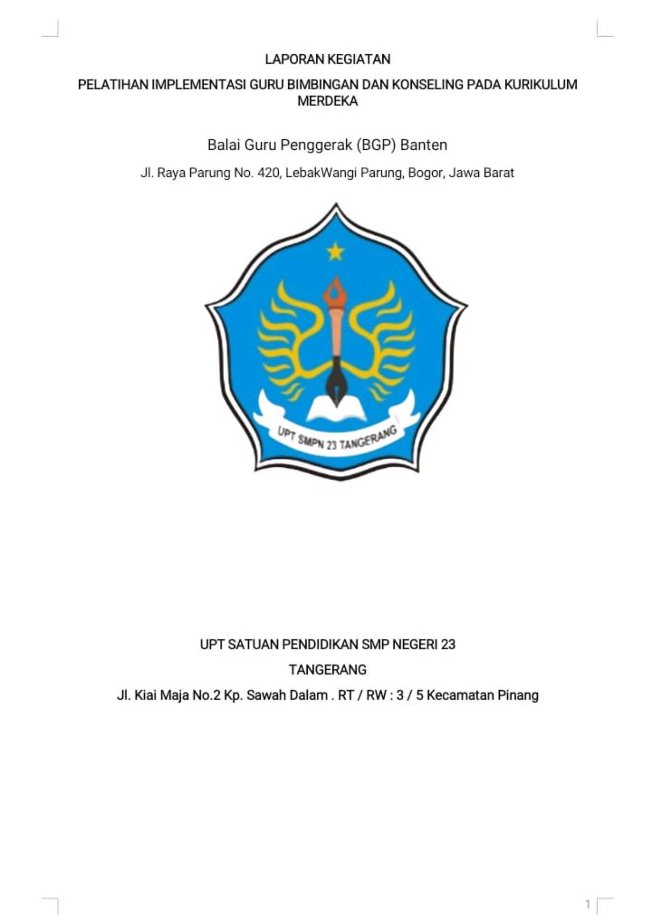 Laporan Diklat Pengoptimalan Komunitas Belajar pada Satuan Pendidikan di Lingkungan Pemerintah Kota Tangerang