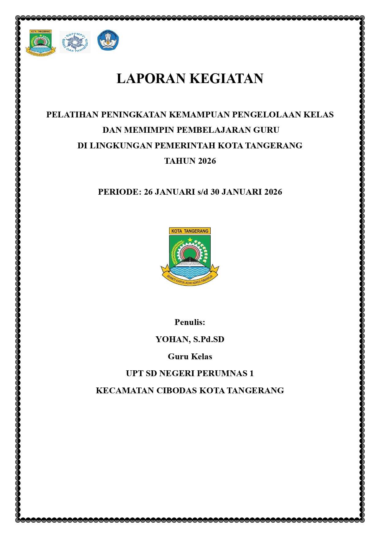 Laporan pelatihan kepemimpinan pembelajaran kepala sekolah di lingkugan pemerintahan Kota Tangerang