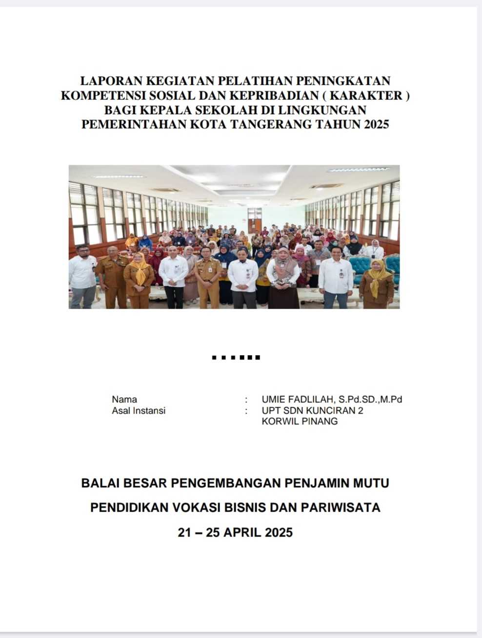 Materi dan bahan ajar yang digunakan dalam program pelatihan peringatan kompetensi sosial dan kepribadian karakter bagi kepala sekolah di lingkungan pemerintah kota Tangerang tahun 2025 adalah: 1. Konsep kematangan moral…