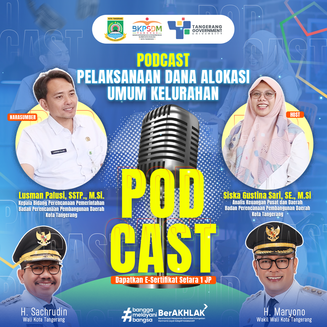 Podcast ini mengulas tuntas tentang pelaksanaan Dana Alokasi Umum (DAU) Kelurahan di Kota Tangerang bersama Lusman Palusi, Kabid Perencanaan Pemerintahan Bappeda Kota Tangerang. Pembahasan…